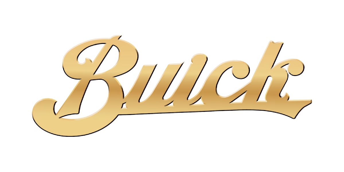 Buick’s original 1903 logo design reflected the industry’s infancy but quickly became outdated—a man in a top hat walking across the Arctic circle pulling a steam engine hardly says “modern car company.” Within only two years, the brand’s logo had evolved to an elegant gold wordmark logo design using a script font, based on David Dunbar Buick’s signature.