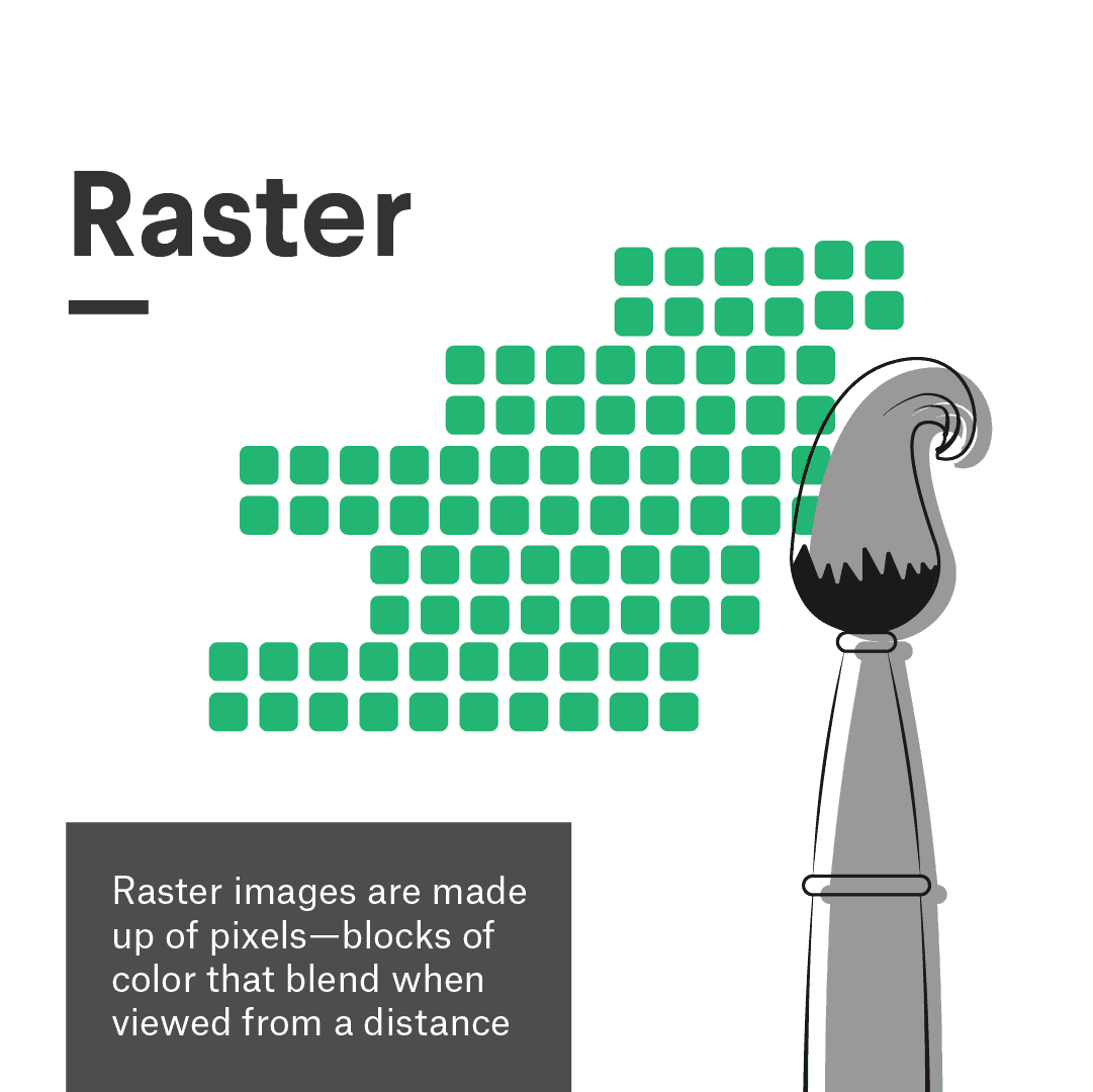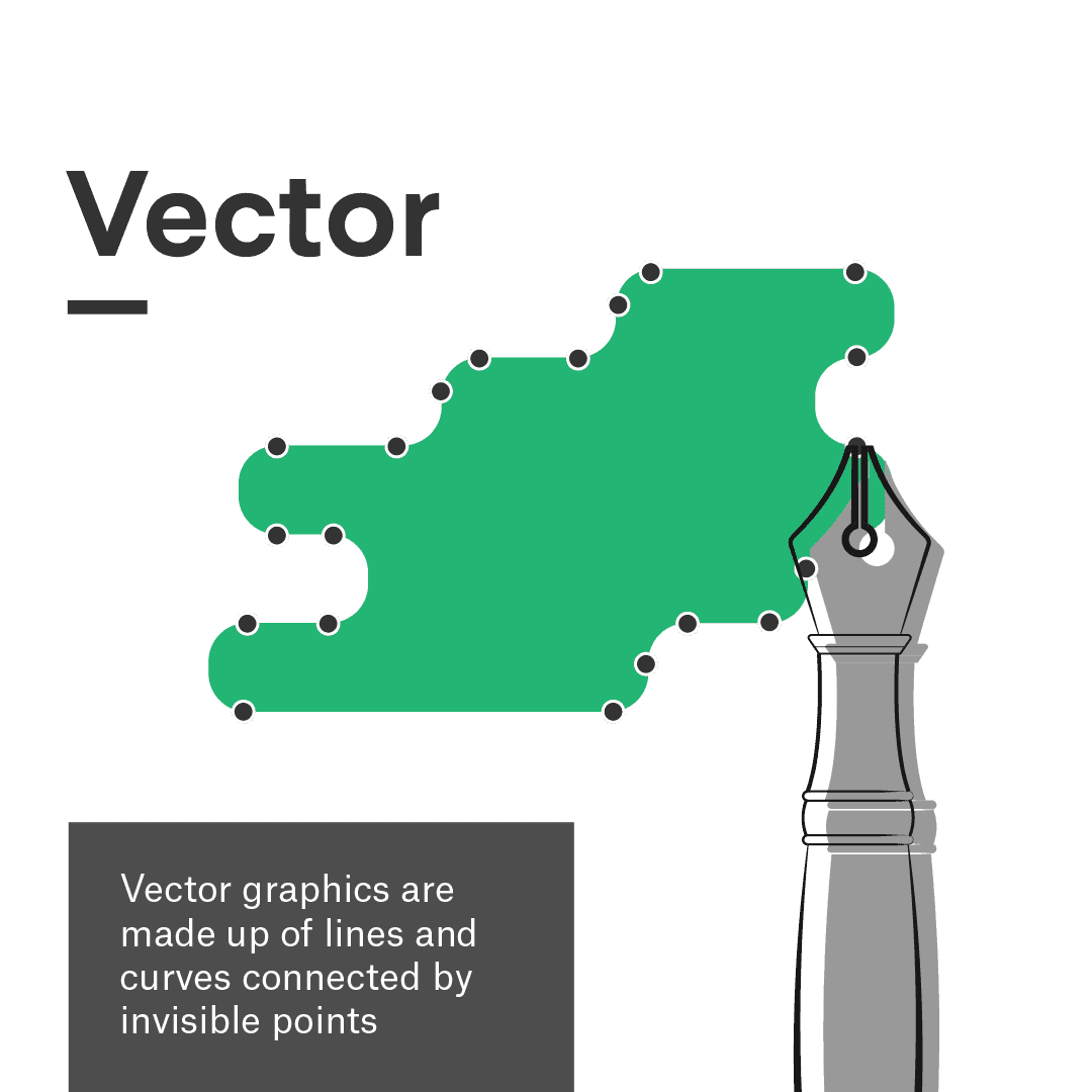 These programs make changing the design much easier as it is all a matter of adjusting the position of the points or the curvature of the line. Vector images are also infinitely scalable with no loss in quality for this reason. And since you are working with entire shapes instead of pixels, changing color is as easy as selecting a shape and choosing a color from the program’s color picker.
