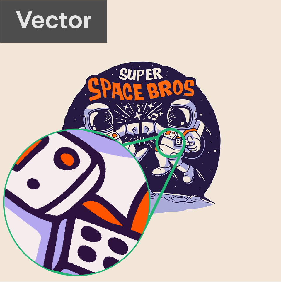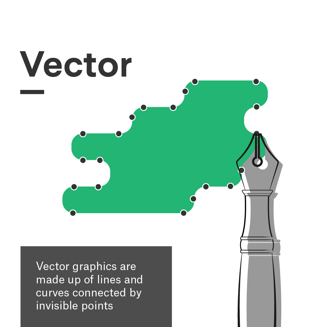 These programs make changing the design much easier as it is all a matter of adjusting the position of the points or the curvature of the line. Vector images are also infinitely scalable with no loss in quality for this reason. And since you are working with entire shapes instead of pixels, changing color is as easy as selecting a shape and choosing a color from the program’s color picker.
