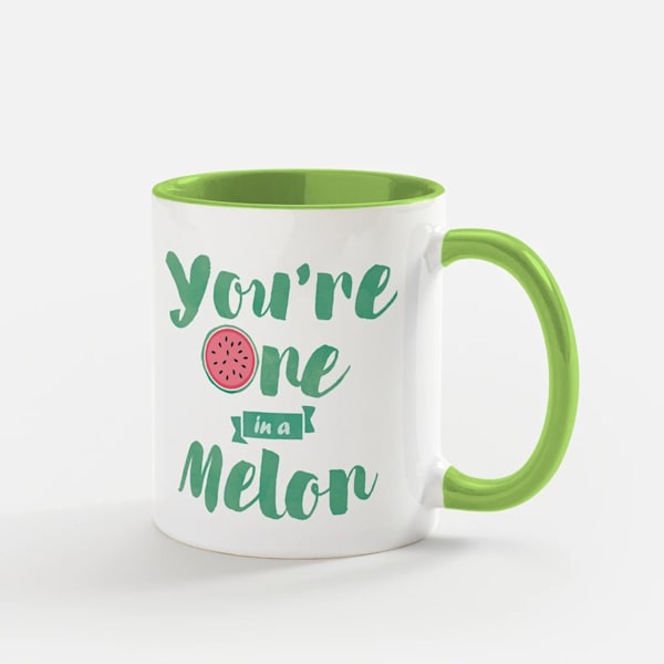 Funny food-related slogans like “You’re one in a melon” or “Donut worry” are lighthearted mug design ideas guaranteed to make the recipient smile.