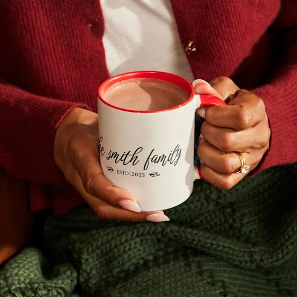 Print your family name on a mug using a handwritten font or a patterned background for a heartfelt gift celebrating your special family bond.