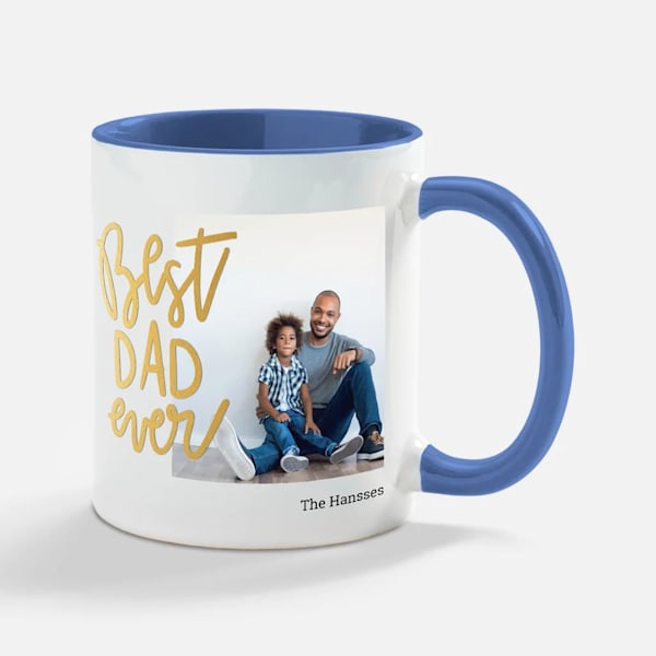 A mug that says “Best Dad Ever,” “#1 Dad” or “Coolest Dad Ever” on it is a heartwarming gift for dads that’s sure to bring a smile to his face. Show your dad he’s truly one of a kind with a one-off mug design!