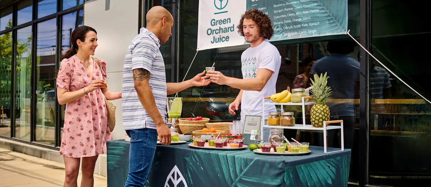Make sure your setup is something they’ll want to photograph. Consider hanging an Instagram-worthy backdrop and make your product look extra pretty (colorful smoothie garnishes, anyone?).