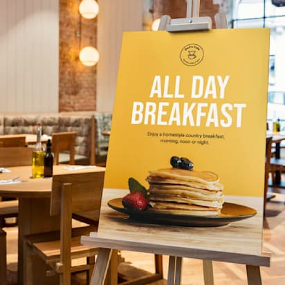 While bright colors are perfect for catching the eye of passersby, it’s the message on your A-frame sign that will make them want to step inside. Use your sign to highlight your best deals—make the offer clear and easy to spot. Keep the message short, punchy and simple, so customers can quickly understand what you’re offering without having to squint.