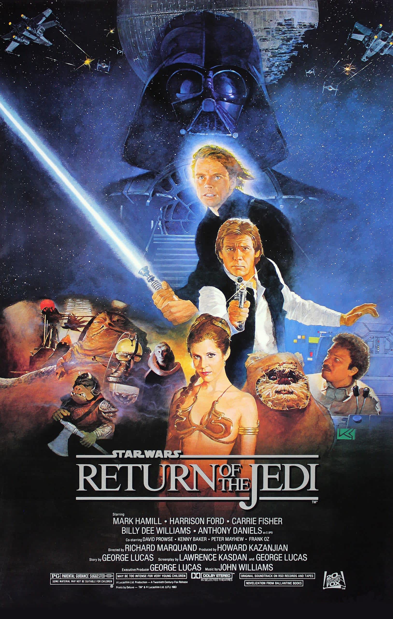 The “Star Wars” text didn’t get incorporated into the border, either, unlike Empire. It just sits there, with the final S floating off into space, unmoored. The whole affair is a sad way of ending the trilogy after two amazing logos.