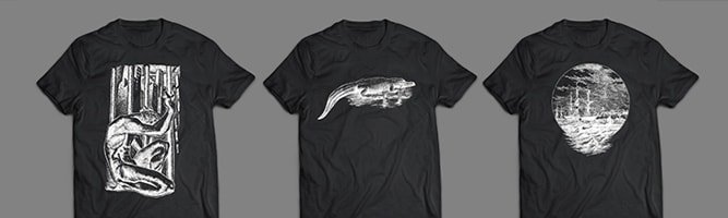 In the first example, featuring a Lynd Ward illustration for Donald Culross Peattie’s 1937 A Book of Hours, it could be argued that the design is too tall and vertically extended for a t-shirt. It leaves some uncomfortable negative space on the sides.