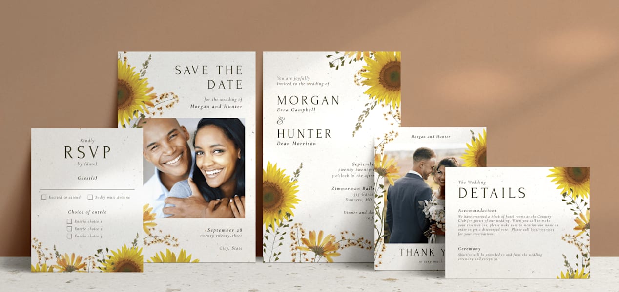 Rustic and country-style weddings embody simplicity and natural beauty, creating an ambiance that feels warm, inviting and effortlessly charming. From earthy textures to whimsical details, these invitation ideas embrace the rustic allure of weddings nestled in the heart of nature.