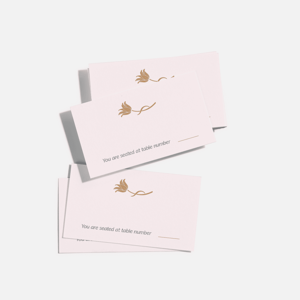 Although wedding place cards tend to be simple, they’re a great place to feature your unique wedding design. Work with your partner to create great-looking designs that fit into your wedding stationery suit and feature your guests’ names and table numbers.