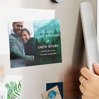 Photo cards are a great way to give guests a sneak peek at wedding photos before they hit social media! With a photo card, you can go with any vibe: playful, reverent, sentimental or even silly. You can also opt for black-and-white or full color images, depending on the style you’ve chosen for your wedding stationery.