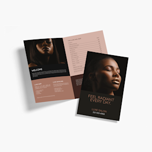 Bi-fold menus are not only popular for restaurants, bars, food trucks and cafes, but they can also be used for advertising salon, fitness and other professional services. Our smaller 8.5" x 11" size (8.5" x 5.5" when folded) is ideal for keeping at the cash register or sending out in the mail, while the larger 11" x 17" size (11" x 8.5" when folded) is a favorite for table service and long product lists.