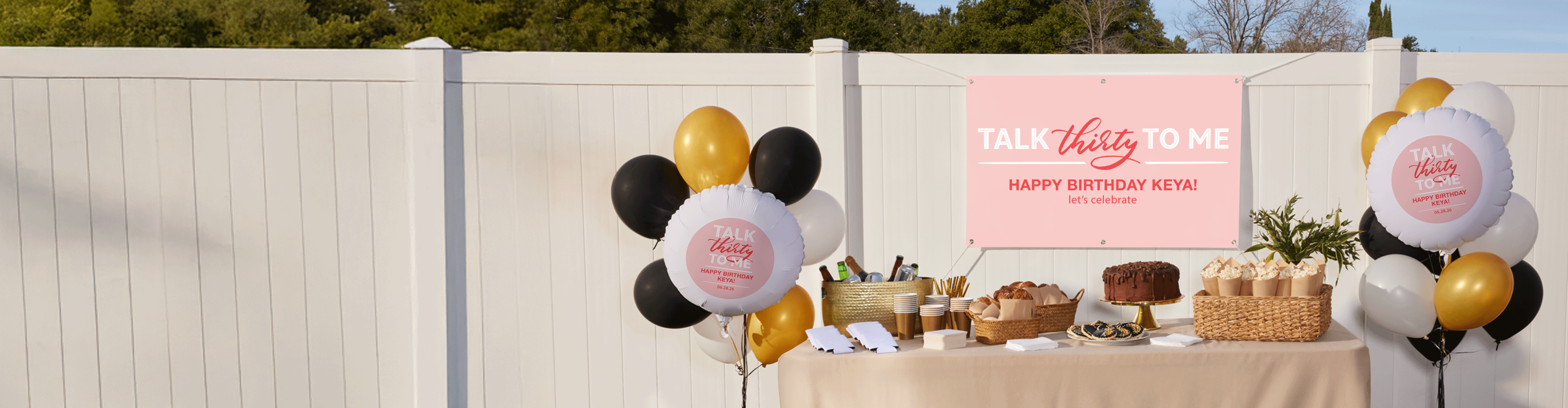 Find all your party needs from napkins and balloons to signs and T-shirts.