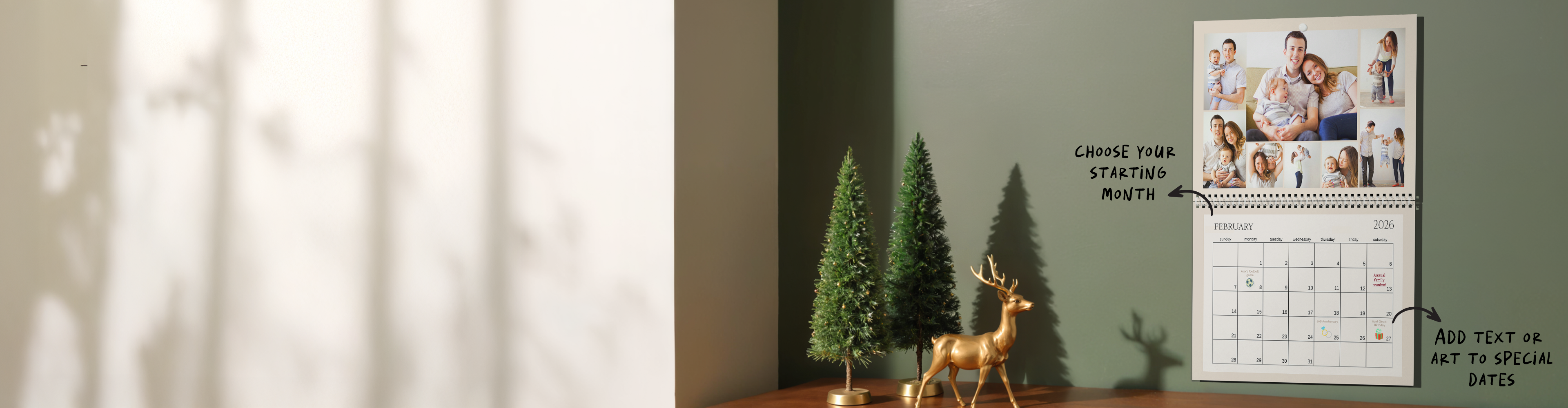 That depends on which calendar style you choose. For wall calendars and desk calendars, you can easily pick a starting month by clicking on the "Edit calendar dates" section as you're designing. However, poster calendars and magnetic calendars start with January.