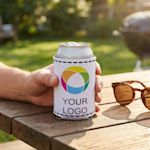 Our custom can cooler keeps your drinks cold and your hands dry. And since it stores flat, it’s easy to pack away or hand out as a giveaway.