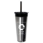 Stay stylish and hydrated with this trendy tumbler featuring a double-wall design that reduces condensation and a spill-resistant lid with flip-top opening. Whether you're commuting to work or enjoying outdoor activities, this versatile tumbler with included matching straw keeps your beverages at the right temperature. It's easy to customize – add your logo, message or info using our intuitive studio. Need a hand? Our design experts are here to help bring your ideas to life.