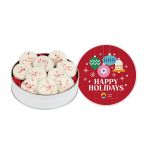 Delight your recipients with holiday-inspired peppermint cookies in a custom tin.