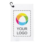 Keep your clubs clean and your game sharp with this convenient golf towel designed for easy portability from cart to green. Whether you're a junior player or an experienced golfer, this towel provides quick access for cleaning equipment between shots. It's easy to customize – add your logo, message or info using our intuitive studio. Need a hand? Our design experts are here to help bring your ideas to life.