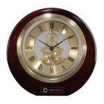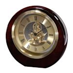 This skeleton clock showcases its intricate mechanics through a polished rosewood case. Crafted with rosewood and brass for lasting beauty.