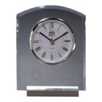 This clock brings a polished look to any desk or shelf with its arched acrylic design. Crafted from acrylic and metal for a substantial feel.