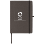 Capture your thoughts with a notebook featuring a distinctive textured cover made from repurposed materials. Keep meeting notes organized, jot down creative ideas, or maintain your daily to-do list with this practical writing companion. It's easy to customize – add your logo, message or info using our intuitive studio. Need a hand? Our design experts are here to help bring your ideas to life.