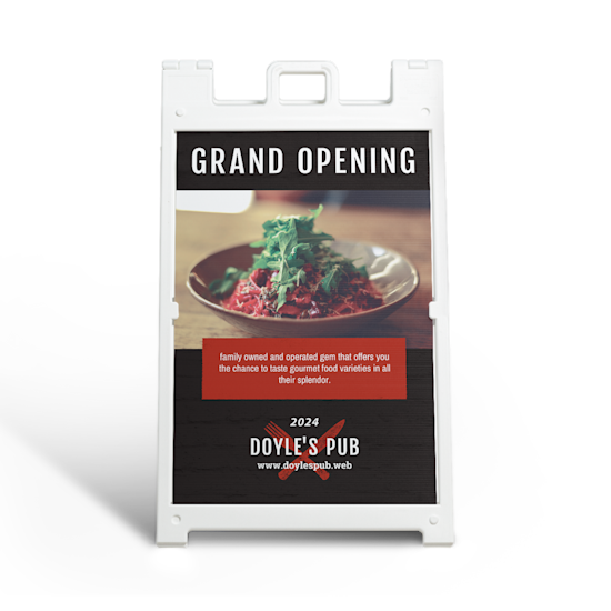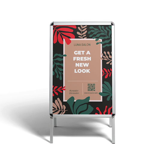 Ready to get started? Begin by exploring our assortment of aluminum A-Frame signs, including industry-specific options. Personalize your chosen design with key details, like your business name, logo and unique message. We’ll take care of the rest, and your sign will arrive looking crisp, polished and ready to impress.