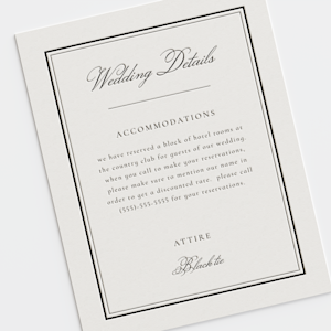 Exquisitely textured, letterpress details cards are an elegant way to share wedding information. 3 paper stocks and 22 ink colors.