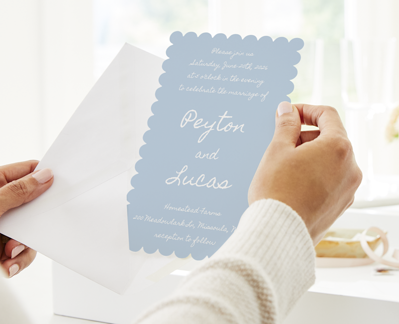 We offer assistance for all stages of the planning process. Starting at square one? We’ll hop on the phone for a consultation on all our stationery products. Or maybe you found a wedding card design in our galleries...only the color isn’t quite what you want. We’ll tweak it until it is. And if you’d like something truly one of a kind, our wedding graphic designers can whip up an original creation just for you.